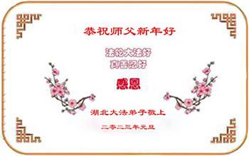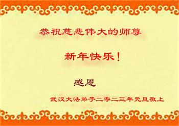 湖北省武汉大法弟子恭祝慈悲伟大的师尊新年快乐!