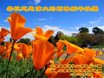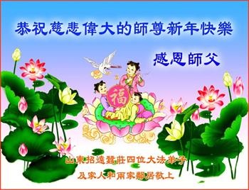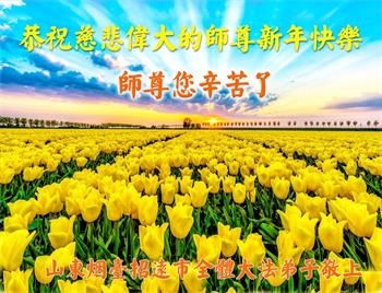 山东烟台芝罘区一学法小组全体大法弟子恭祝慈悲伟大的师尊新年快乐! 山东邹平大法弟子恭祝师父新年好!