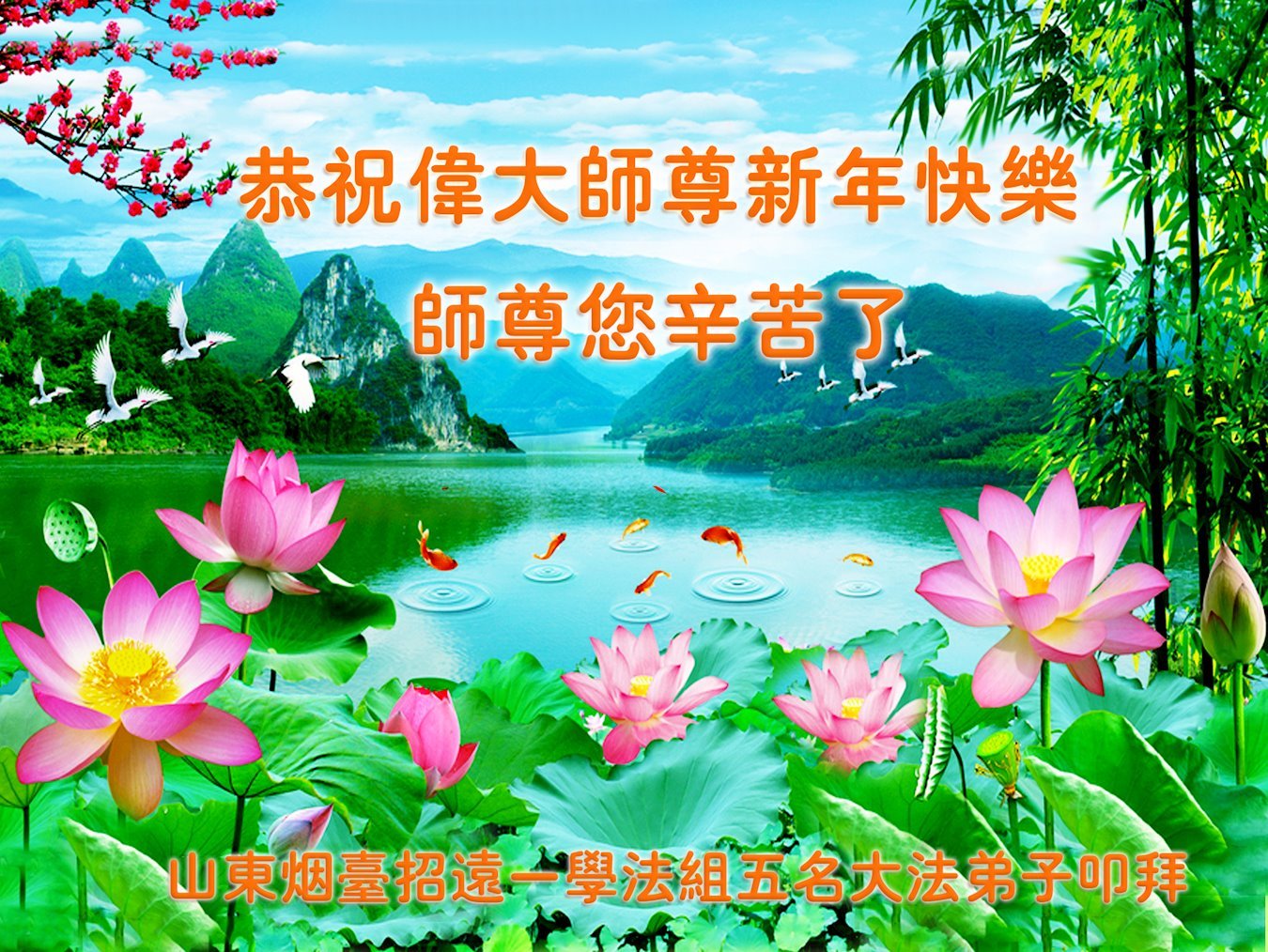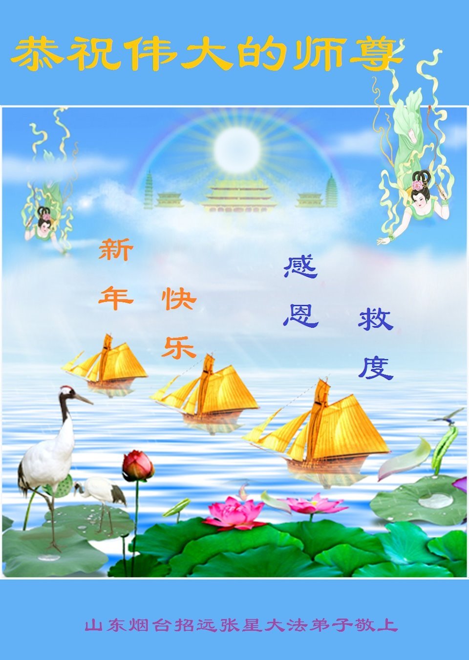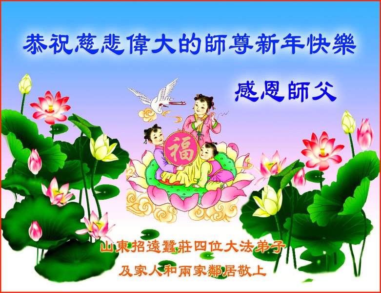 山东省梁山县全体大法弟子恭祝慈悲伟大的师尊新年好! 山东烟台招远张星一学法小组大法弟子恭祝师尊新年好!