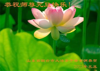 山东烟台一学法小组大法弟子及家人恭祝伟大慈悲的师尊新年快乐!