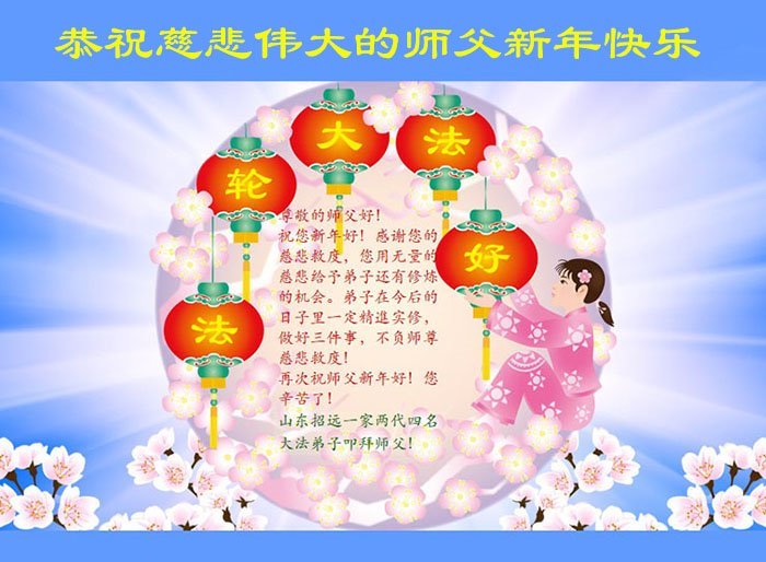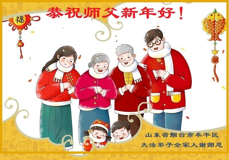 山东淄博一大法弟子全家恭祝师尊新年快乐!