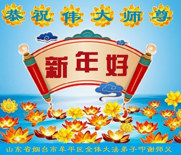 山东省烟台市牟平区全体大法弟子恭祝师尊新年快乐!