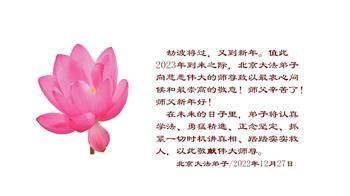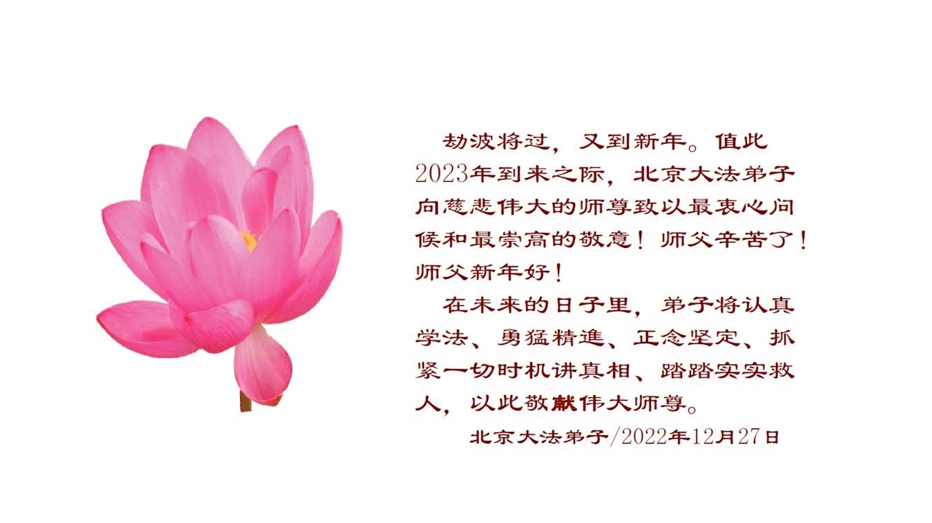 北京大法弟子于二零二三年元旦向师尊致以最亲切问候和崇高敬意!