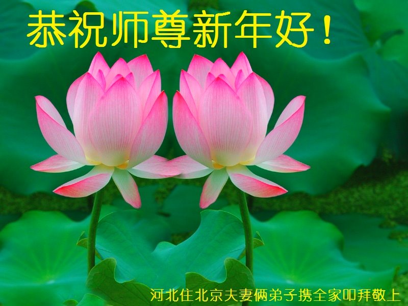 新的一年又到了,怀着对师尊无限感恩与期盼的心情,恭祝师尊新年快乐!盼望和师尊早日欢聚。弟子们要努力精進实修多救人兑现誓约! 河北住北京夫妻俩大法弟子恭祝师尊新年好!