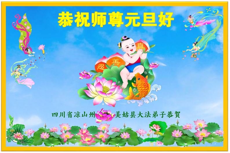 四川省凉山州美姑县大法弟子恭祝师尊元旦好! 四川省达州市大竹县大法弟子一家三口恭祝师尊新年快乐!