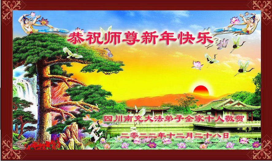 【明慧网二零二二年十二月三十日】 四川南充大法弟子全家十人恭祝师尊新年快乐!