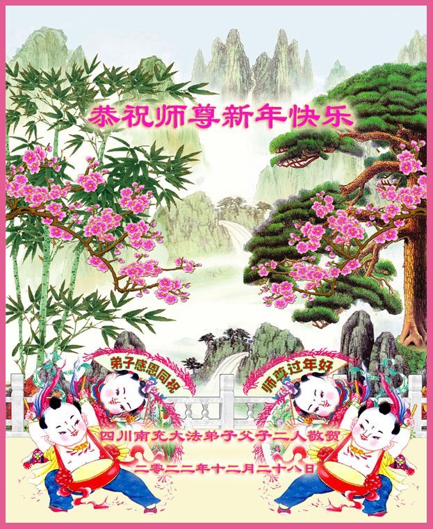 四川南充大法弟子父子二人恭祝师尊新年快乐!
