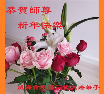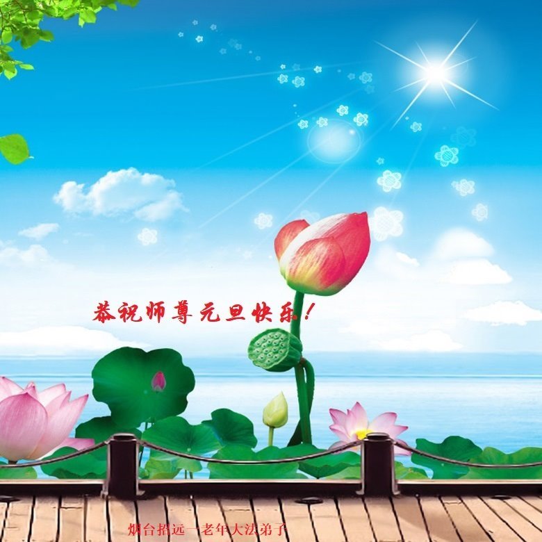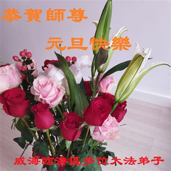 伟大师尊元旦好 大法洪传众生笑 邪魔乱鬼一朝去 大法正气化冰消 伟大师尊辛苦了 弟子牢记师教导 救度众生讲真相 众生得救最重要 有朝一日圆满时 天上人间齐欢笑 山东省威海市临港区多位大法弟子恭祝师尊元旦快乐!