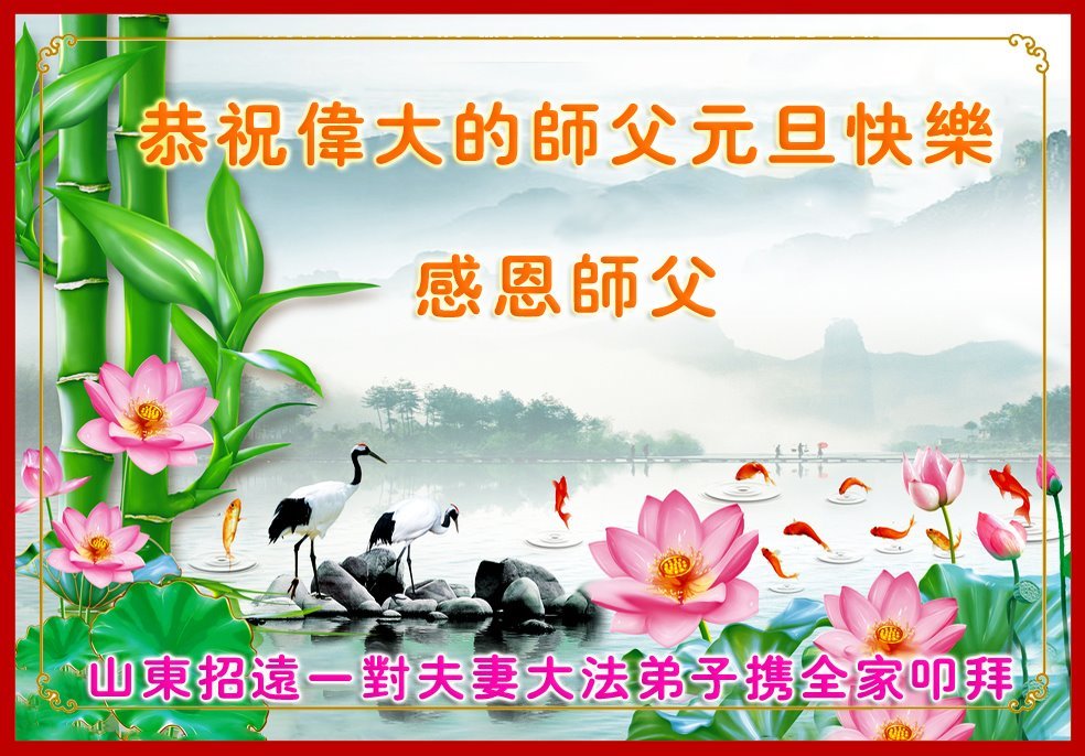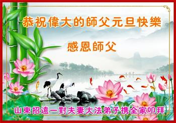 弟子永远感恩师父!坚信大法,坚修大法,助师救人,广传真相。 山东一大法弟子代表我们学法小组和我的全家向慈悲伟大的师尊问好!恭祝慈悲伟大的师尊新年快乐!