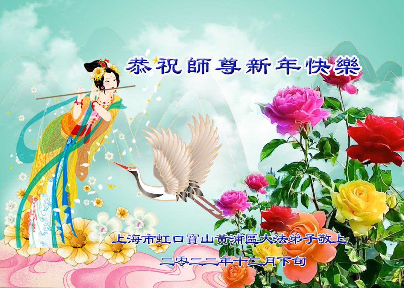【明慧网二零二二年十二月三十日】 上海市虹口、宝山、黄浦大法弟子恭祝师尊新年快乐!