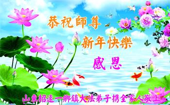 弟子非常想念师父!感谢师父慈悲救度之恩!弟子一定珍惜此缘,做好大法弟子的三件事,圆满随师还。 山东省烟台市莱州市朱桥镇乡村一学法小组大法弟子恭祝师尊新年快乐!