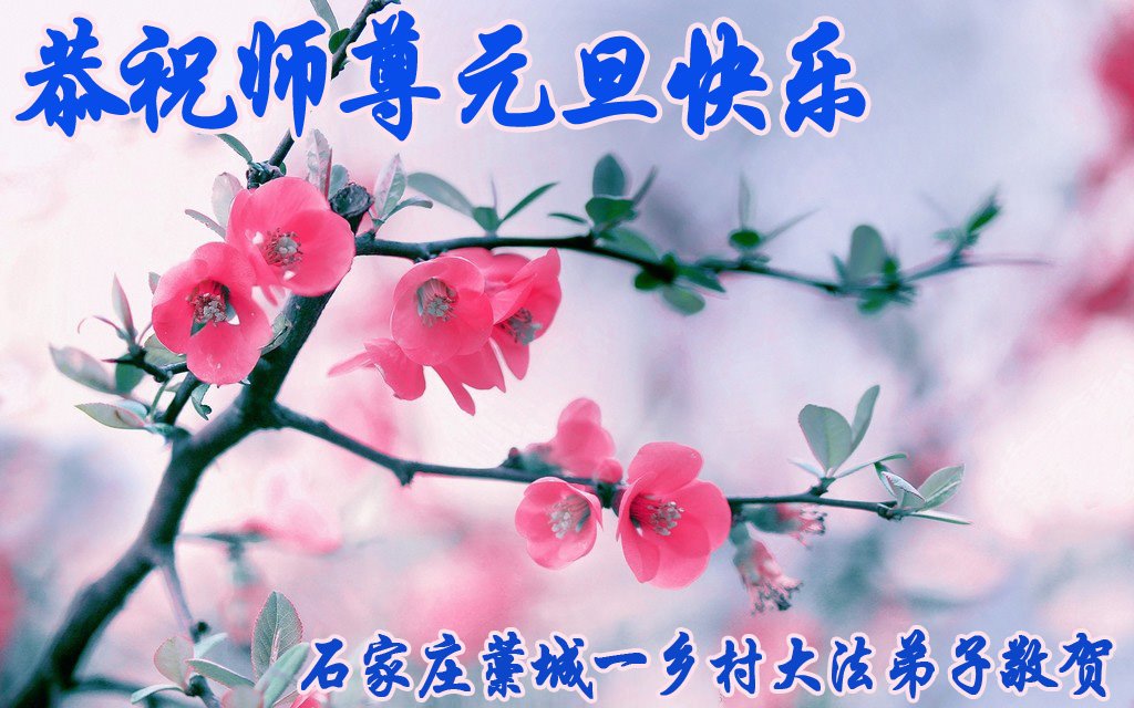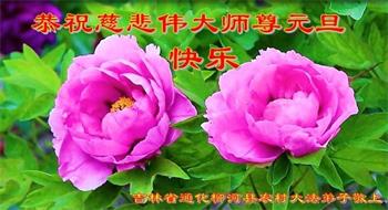 恭祝师尊新年快乐!师尊您好!您辛苦了! 弟子在这二十五年的修炼路上,每前進一步都渗透着师尊的心血;每闯过一个难关,都离不开师尊的加持、保护。最近几日在师尊的加持下,弟子又闯过了一关——病业关。 今天怀着无比感恩的心,在新年来临之际,向师尊问好!恭祝师尊新年快乐! 在以后所剩不多的时间里,兑现誓约,多救人,让师尊多一份欣慰,少一份操劳。 山东省青岛市平度市农村一大法弟子敬贺 河北省石家庄井陉县一工厂和农村全体大法弟子恭祝慈悲伟大的师尊新年好!