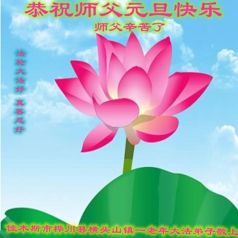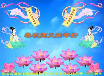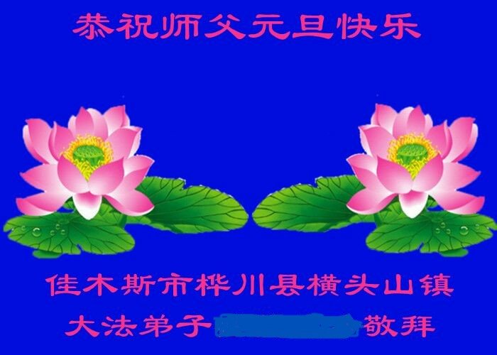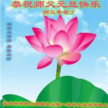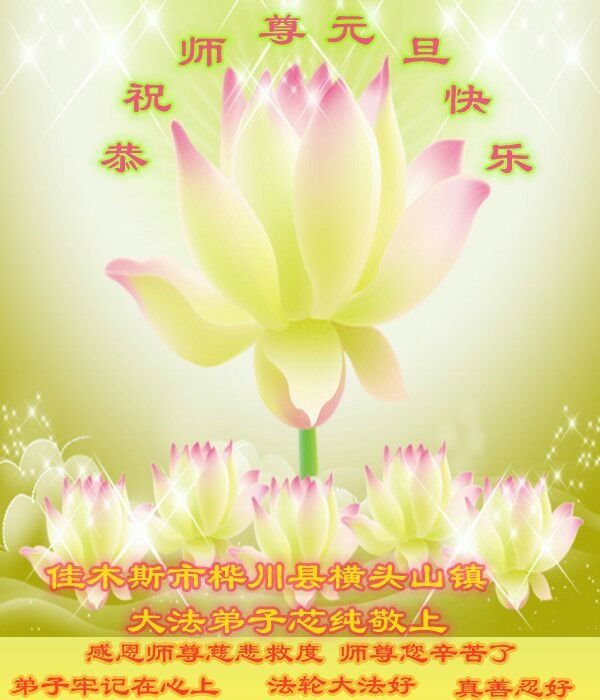在这辞旧迎新之际,我地区七十、八十、九十岁却老当益壮的大法徒,以无比崇敬的心情祝慈悲伟大的师尊新年快乐!谢谢师尊的慈悲苦度!我们在师尊的看护下,走过了二十多年的修炼之路,师父为我们操尽了心,这是无法用语言表达的。请师尊放心,不管修炼的路还有多长,我们都要勇猛精進,直至圆满。 黑龙江省佳木斯富锦市大法弟子敬上 黑龙江省佳木斯市桦南县青年大法弟子恭祝师父元旦快乐!
