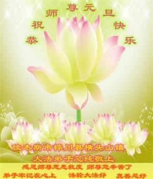 师父您好!祝您新年快乐! 逢年过节,为师父敬上内心都是幸福、开心、感动的!弟子在生活中、工作中、学习中都在用法归正自己的一思一念,在师父的保护下,逐渐的在法中成熟、理性、生慧!弟子无时无刻深记自己是一名大法弟子,注意思想、说话、行为,不能随心所欲。弟子深知作为大法弟子就是一个“行走的真相”,修好自己,才能让众生真正得救!法轮大法好、真善忍好,师父好!叩拜师尊!双手合十 黑龙江省佳木斯一大法弟子及家人恭祝慈悲伟大的师尊新年快乐!