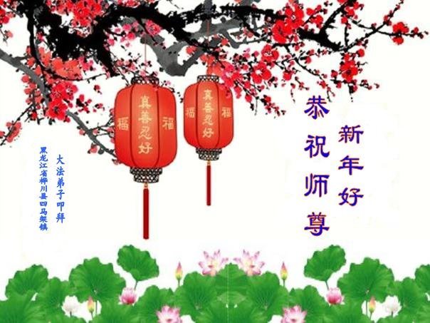 黑龙江省佳木斯大法弟子恭祝慈悲伟大的师尊新年快乐!