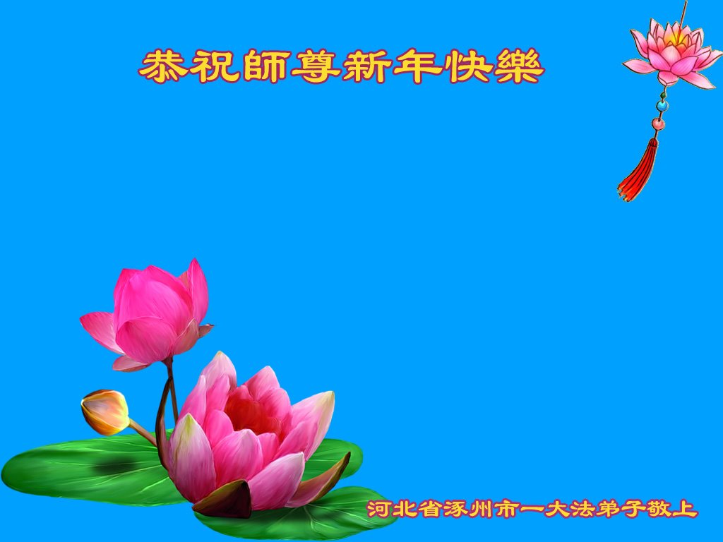 恭祝慈悲伟大的师尊新年快乐! 感恩慈悲伟大的师父救度!感恩大法! 河北省涿州市一大法弟子敬上 河北省保定市涿州市一大法弟子恭祝师父新年快乐!师父辛苦了!