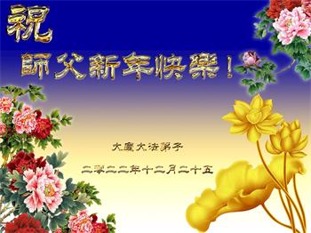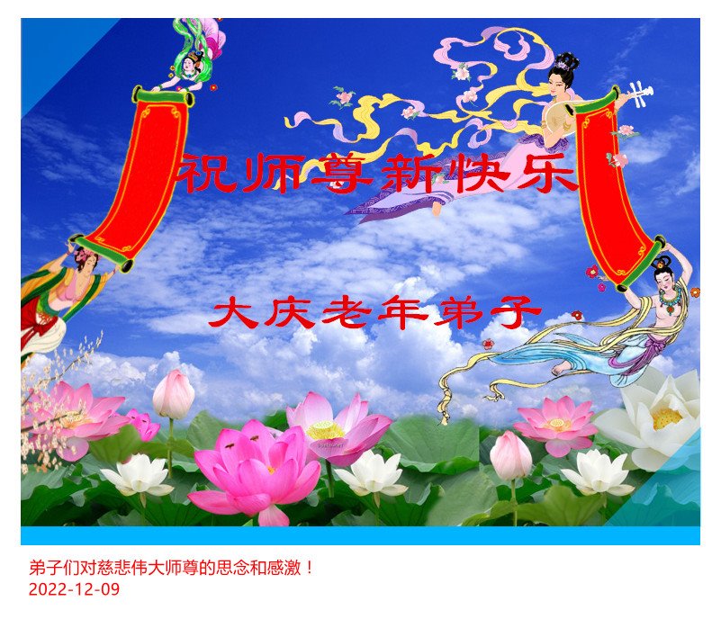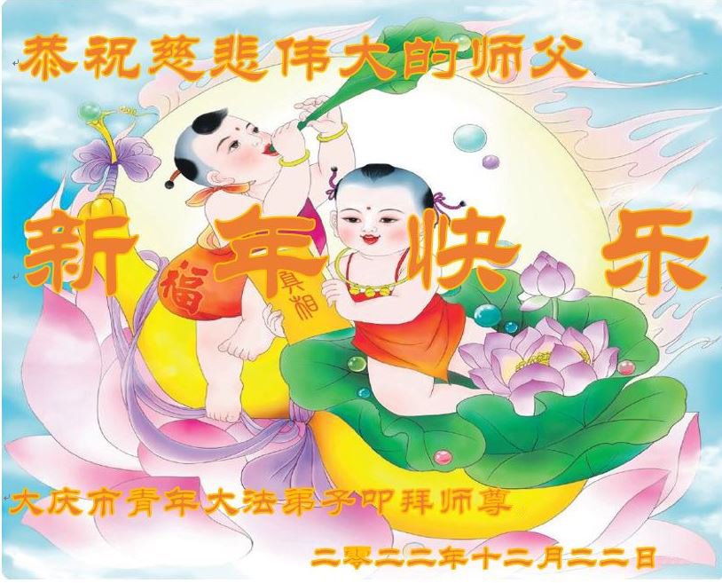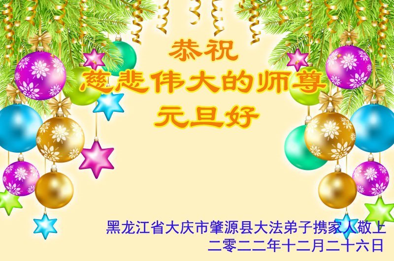 【明慧网二零二二年十二月三十日】 黑龙江省大庆市萨尔图区东风新村六区大法弟子恭祝师父新年快乐!