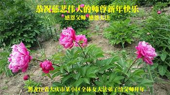 恭祝慈悲伟大的师尊新年快乐! 法轮大法好!真善忍好!师父好! 黑龙江省大庆大法弟子敬上恭祝师父新年快乐!