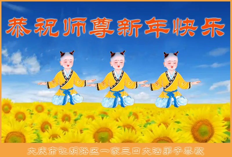 黑龙江大庆一大法弟子全家感恩师尊慈悲救度与看护,恭祝师尊新年好! 黑龙江大庆一学法小组全体弟子恭祝师尊新年好!