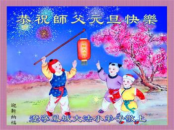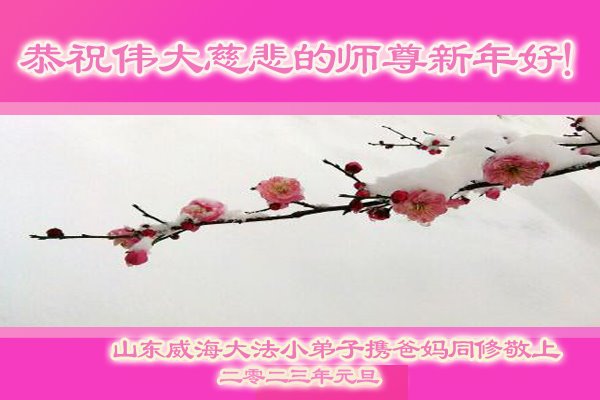 尊敬的师父:您好!在元旦佳节来临之际,小弟子在此恭祝师尊元旦快乐! 山东烟台市招远市大法小弟子敬上 五岁大法小弟子向慈悲伟大的师尊问好!