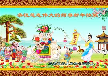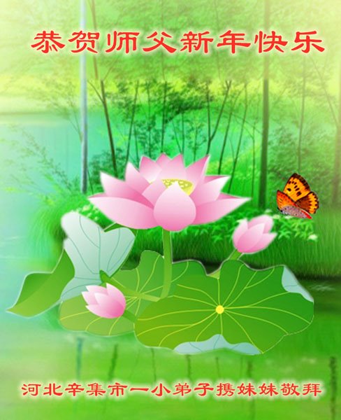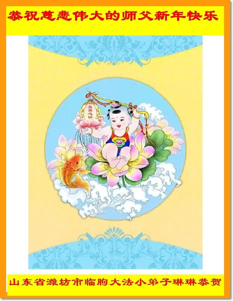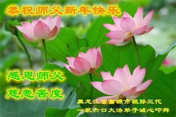 尊敬的师父:您好,万分荣幸能够成为您的弟子,感恩您的无量慈悲,给弟子净化身体,又在修炼的路上慈悲保护。新年来临之际恭祝慈悲伟大的师尊新年快乐! 山东诸城大法弟子携大法小弟子跪拜 黑龙江省佳木斯一女大法弟子带大法小弟子三人及明真相家人恭祝师尊新年快乐!