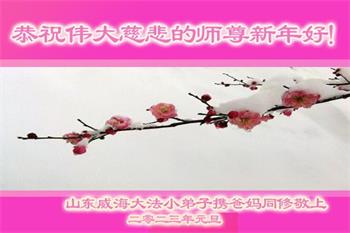 山东省潍坊市临朐县大法小弟子恭祝慈悲伟大的师父新年快乐! 吉林省长春大法小弟子和奶奶恭祝师尊新年好!
