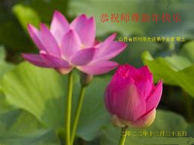 在2023年元旦来临之际,我们全家大法弟子恭祝慈悲伟大的师尊新年快乐!多年来在师尊保护和大法的恩泽下,我们全家大法弟子受益无穷。在正法的最后,我们会继续做好师尊要求的三件事,以报师恩! 跪拜 合十 山西省太原市大法弟子恭祝师尊新年快乐!