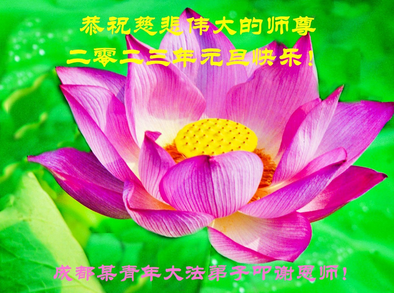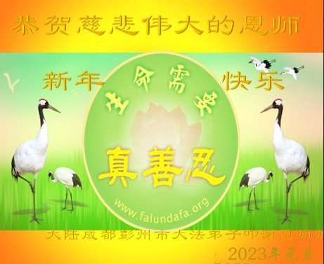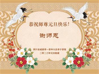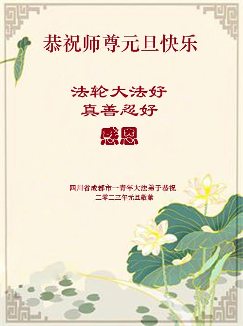 恭祝师尊二零二三年元旦快乐! 成都一青年大法弟子携家人叩谢恩师的慈悲救度! 四川省成都市一青年大法弟子恭祝师尊元旦快乐!