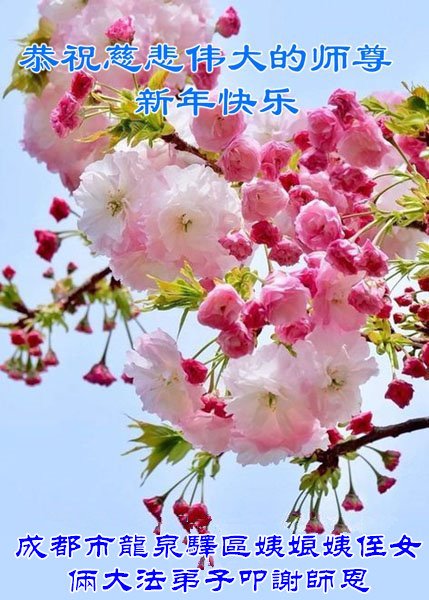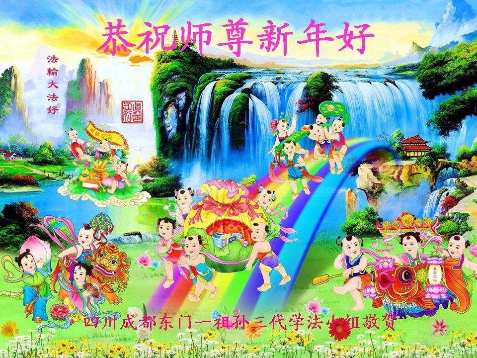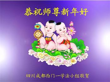 在新年到来之际,成都一老年学法小组大法弟子恭祝师尊新年快乐!在正法最后阶段,我们要修好自己,学好法,做好三件事,助师正法,不懈怠,师父怎么说我们就怎么做。 成都一老年学法小组大法弟子敬上 四川省成都大法弟子恭祝慈悲伟大的师尊新年好!新年快乐!