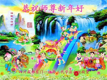 新的一年又在眼前,大法弟子想念恩师。愿自己多救人。感恩师尊无量慈悲,跪拜师尊。 四川省成都一大法弟子全家恭祝师父新年快乐!