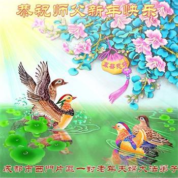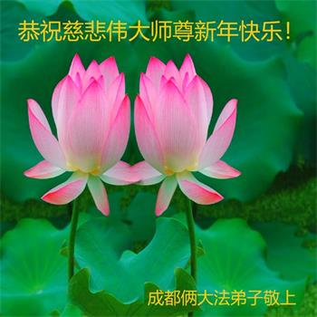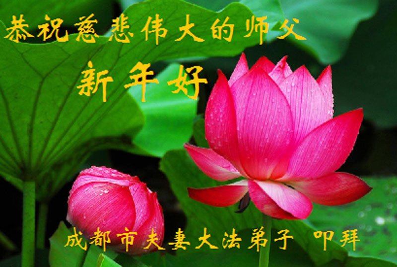 四川省成都夫妻大法弟子恭祝慈悲伟大的师父新年好!