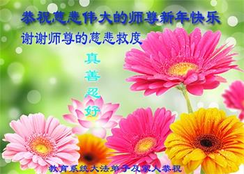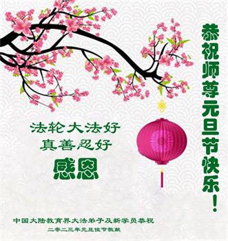 中国大陆教育界大法弟子及新学员恭祝师尊元旦快乐!