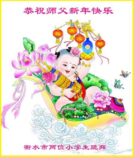 河北省衡水市两位小学生恭祝慈悲伟大的师父新年快乐!