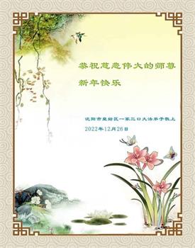【明慧网二零二二年十二月三十日】 辽宁省沈阳大法弟子恭祝师尊新年快乐!