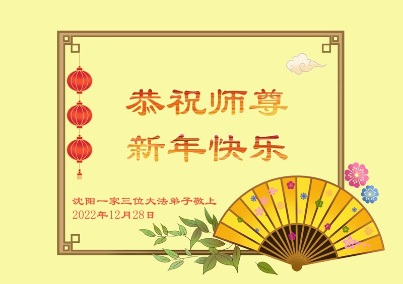 辽宁省沈阳市皇姑区一家三位大法弟子恭祝师尊新年快乐!