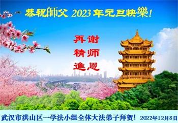 湖北省武汉市新洲区全体大法小弟子恭祝慈悲伟大的师尊新年快乐! 湖北省武汉市洪山区一学法小组全体大法弟子恭祝师父2023年元旦快乐!