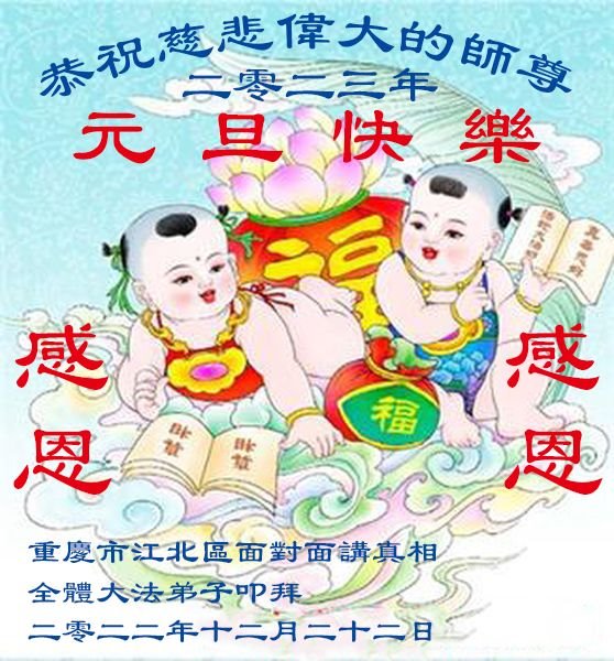 【明慧网二零二二年十二月三十日】 重庆市江北区一面对面讲真相小组大法弟子恭祝师尊新年好!