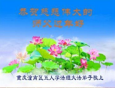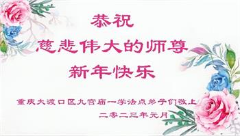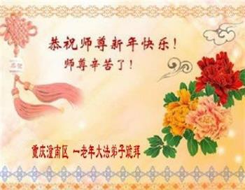恭祝慈悲伟大的师尊新年快乐! 重庆大渡口区九宫庙一学法点弟子们敬上 重庆市綦江区全体大法弟子恭祝慈悲伟大的师父新年快乐!