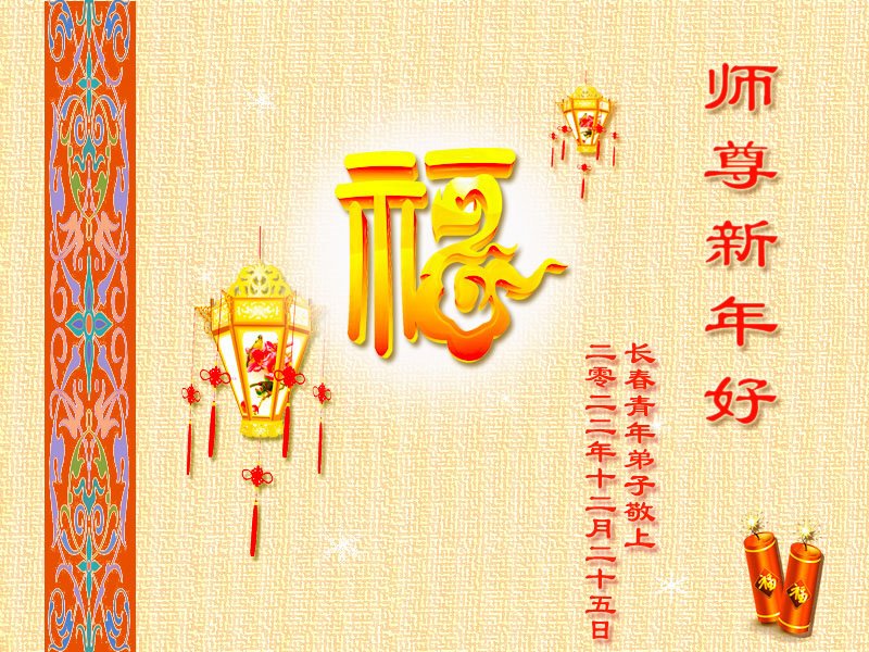 在此新的一年来临之际,我及我的家人同修同祝师父新年好!师父辛苦了! 吉林省长春一大法弟子恭祝伟大师尊新年快乐!