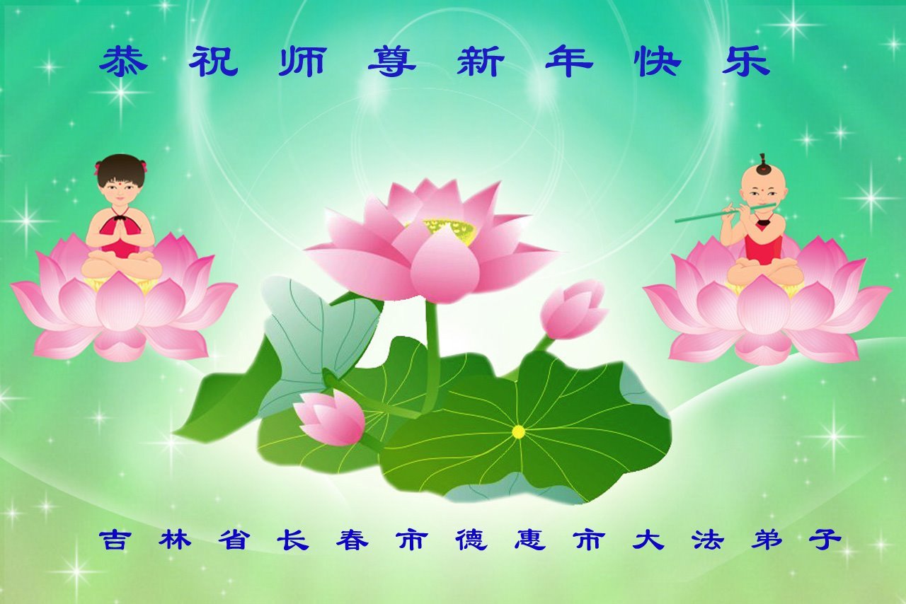 师尊新年好!师父辛苦了!弟子叩谢师尊慈悲救度! 吉林省长春市九台市区一大法弟子恭祝师尊新年好!