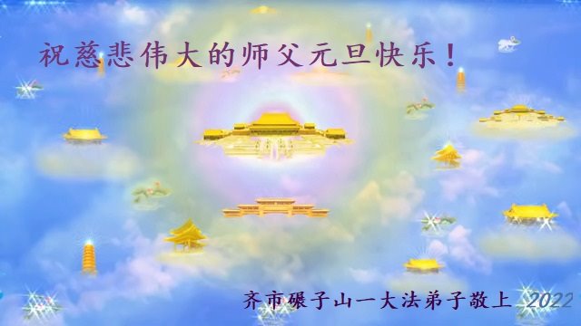 新的一年到来之际,我们碾子山全体大法弟子恭祝慈悲伟大的师尊新年快乐! 在新的一年里我们要学好法,炼好功,多救人,做合格的大法弟子。 我们碾子山全体大法弟子再次祝师尊新年快乐! 2022年12月25日 黑龙江省齐齐哈尔市碾子山区一大法弟子恭祝师尊新年快乐!