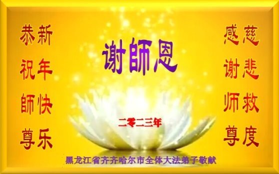 无比感恩师父的慈悲救度!我们一定珍惜最后有限的修炼时间,真修实修,抓紧时间多救人,以报师恩。 黑龙江省齐齐哈尔市富拉尔基区大法弟子恭祝师尊新年快乐!