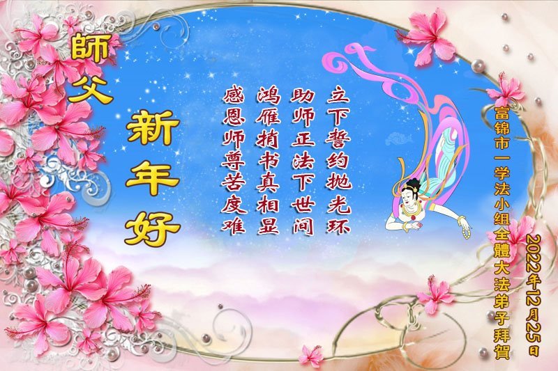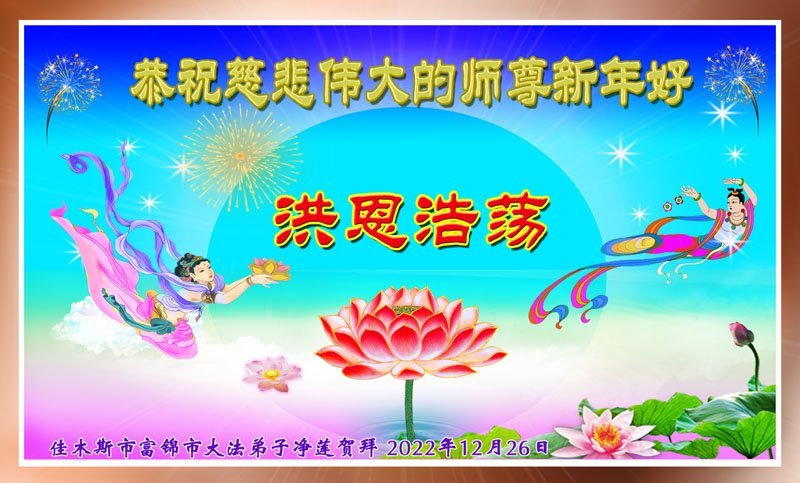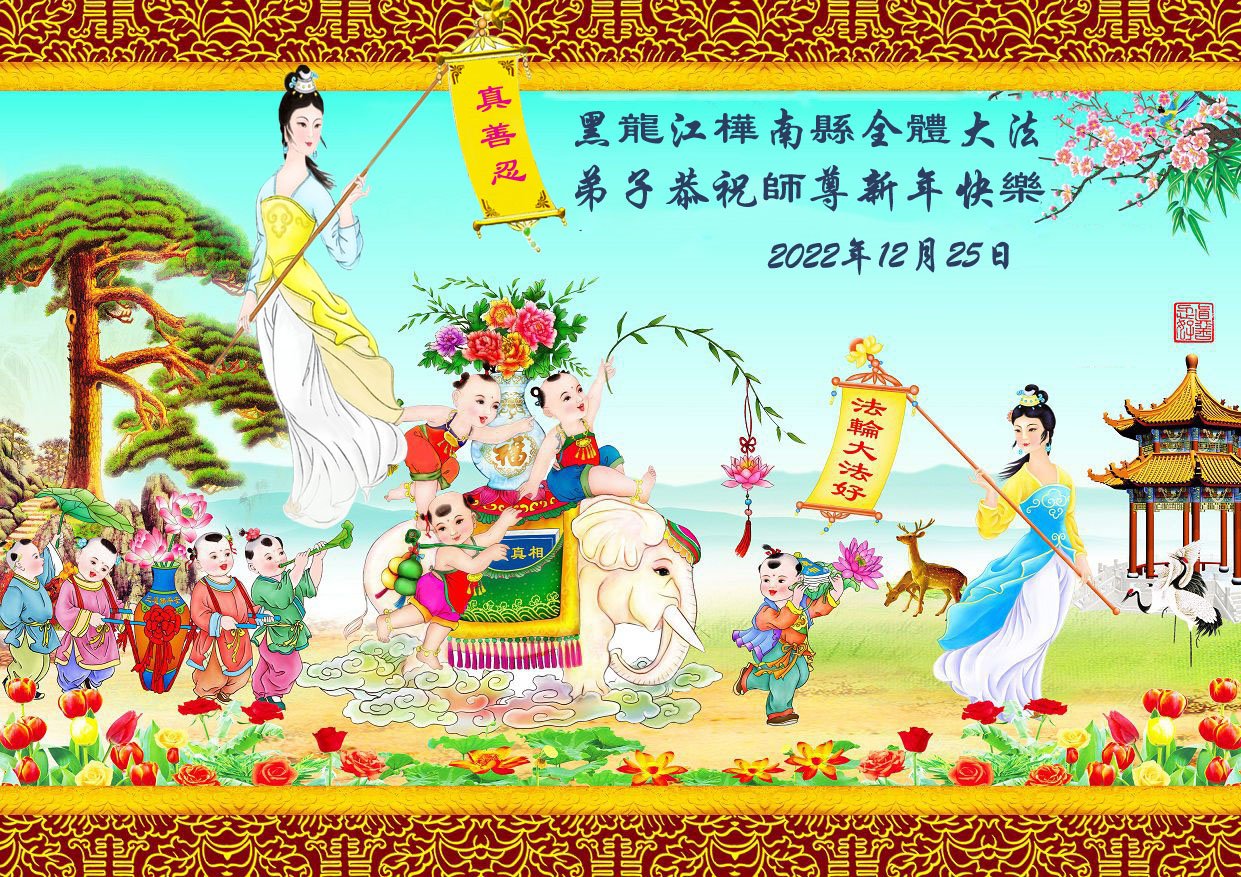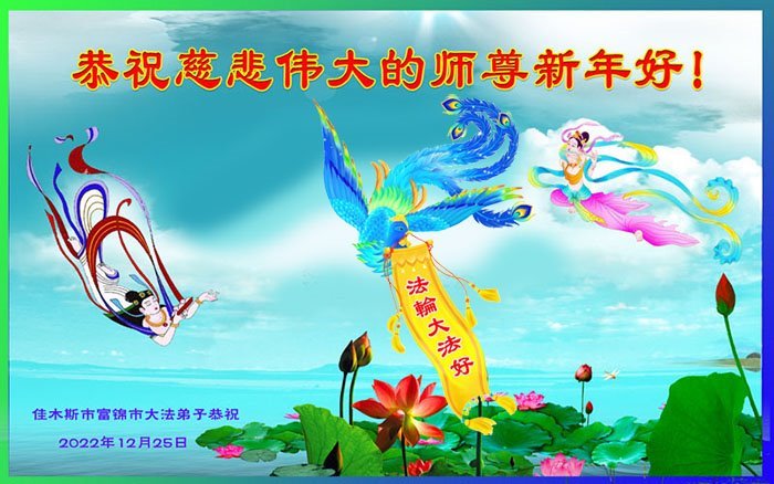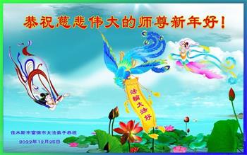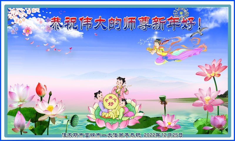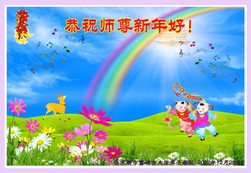 【明慧网二零二二年十二月三十日】 黑龙江省佳木斯市一学法小组大法弟子恭祝师尊新年快乐!