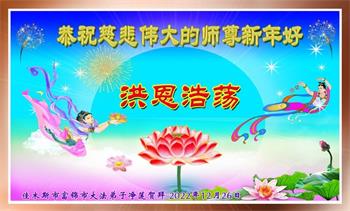 恭祝大法师尊新年快乐!大法师尊您辛苦了! 黑龙江省佳木斯市富锦市全体大法弟子恭祝慈悲伟大的师父新年好!