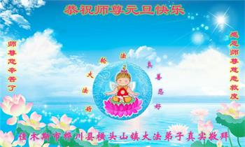 黑龙江省佳木斯市富锦市一学法小组大法弟子向伟大师尊问候新年快乐!
