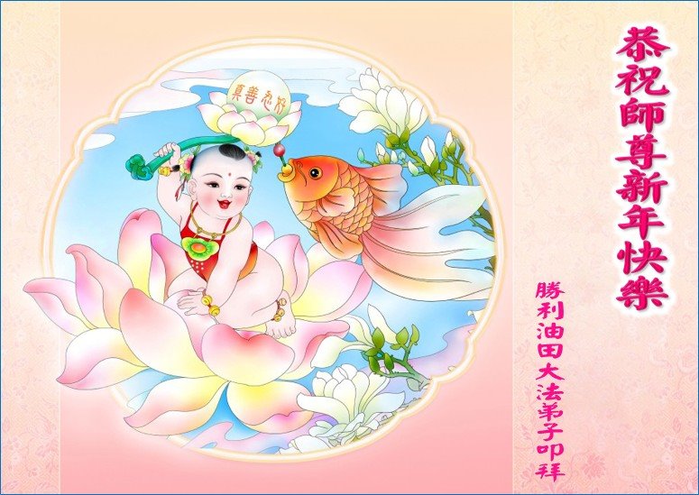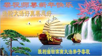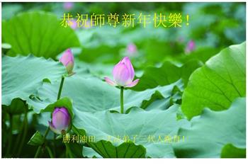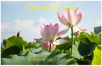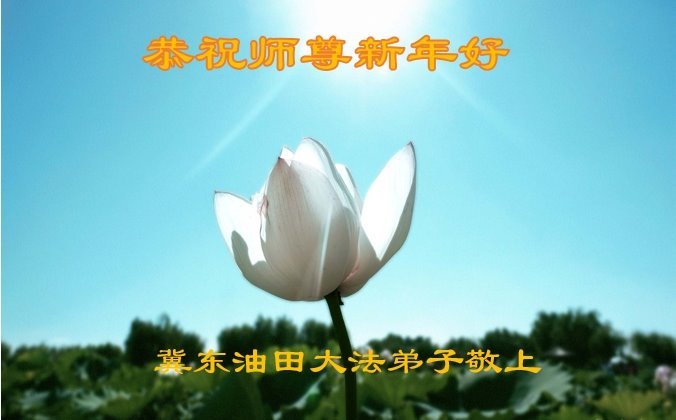 师父您好!弟子们及家人们一直被师尊保护,师恩无以为报!弟子今后努力修好自己,努力做到每思每念每言每行精進实修,做好三件事,圆满随师还! 山东省东营市暨胜利油田孤岛地区全体大法弟子恭祝师父新年快乐!