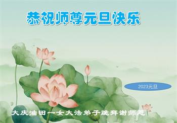 恭祝师尊元旦快乐! 大庆油田一女大法弟子跪拜谢师恩 山东省胜利油田一大法弟子三代人跪拜