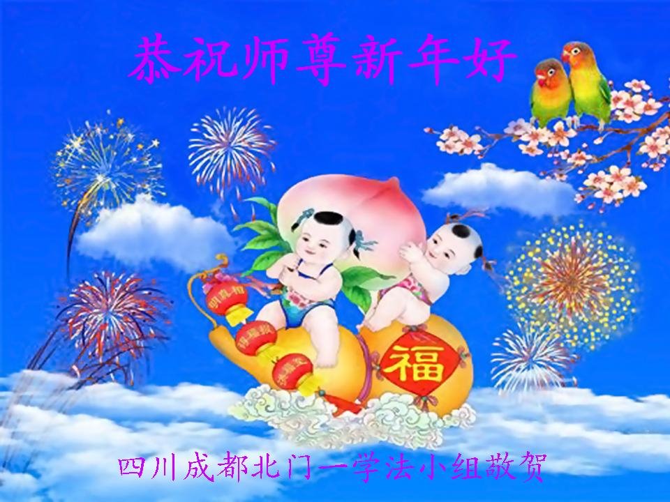 四川省成都市西边一学法组大法弟子敬祝慈悲伟大师父新年快乐!