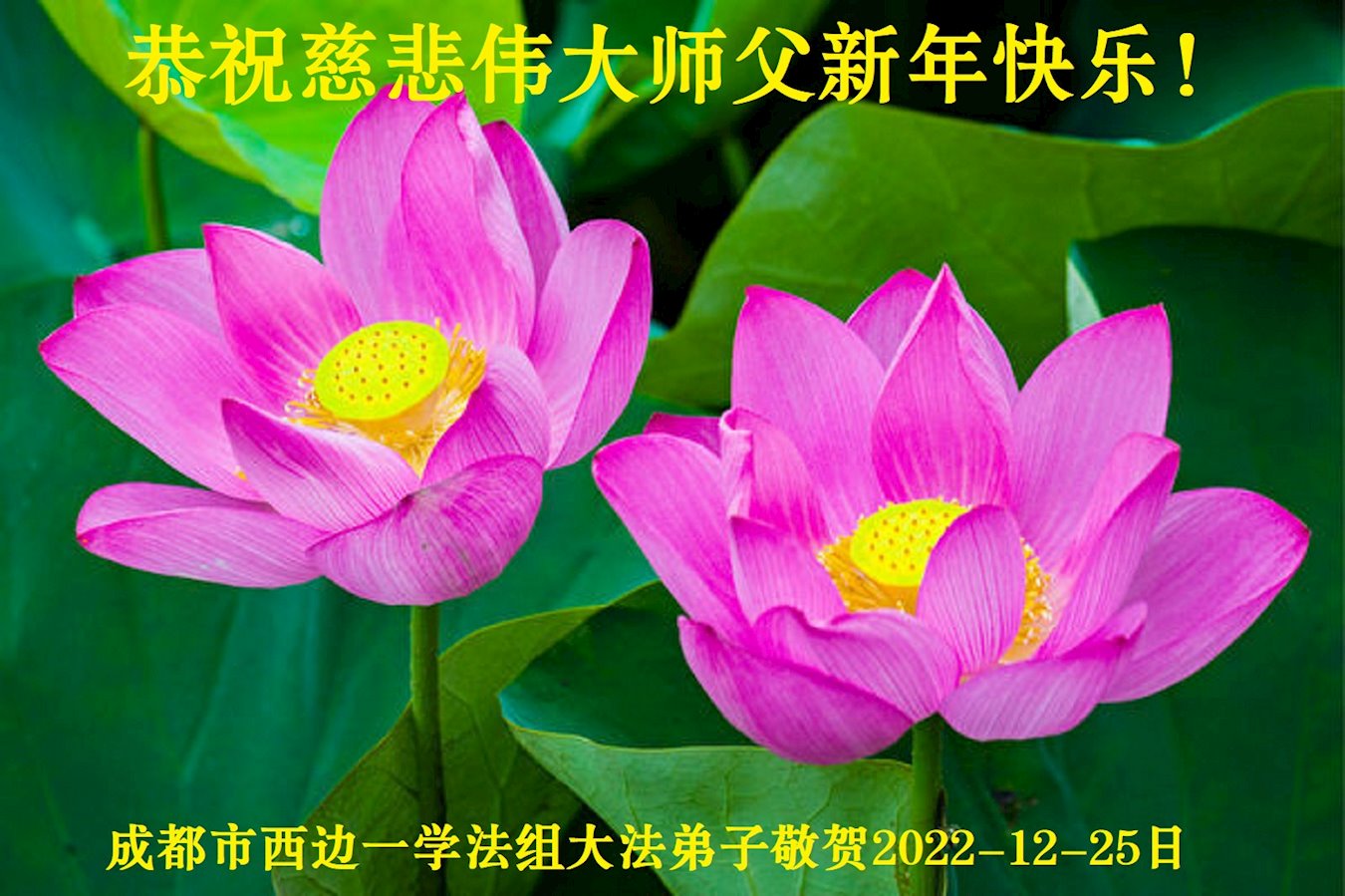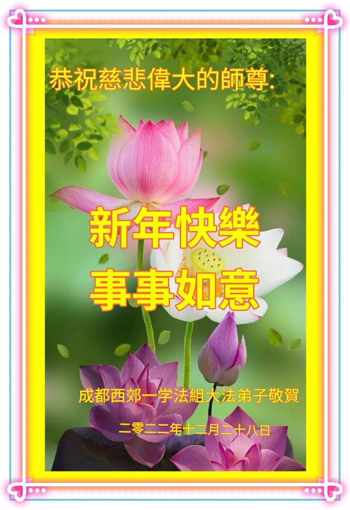 【明慧网二零二二年十二月三十日】 四川省成都市武侯区南门一学法小组全体大法弟子恭祝师尊新年快乐!