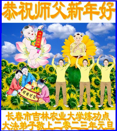 我们是高校大法弟子,二零二三元旦来临之际,恭祝师尊元旦快乐!敬谢师尊慈悲苦度,师尊您辛苦了! 长春市吉林农业大学炼功点大法弟子恭祝师父新年好!